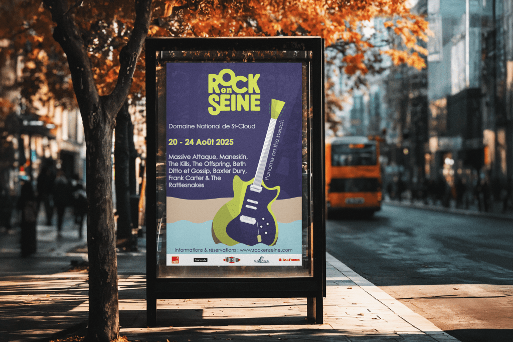 Pour ce projet nous avons du reprendre le thème et les artistes de l’année 2024. Le thème était donc « Paname on the Beach ». Vous avez tout d’abord le Mockup de l’affiche sur un arrêt de bus et ensuite l’affiche, le billet et le dépliant. Nous avons donc appris comment utiliser certains logiciels rapidement et efficacement mais également comment produire un produit de communication.
